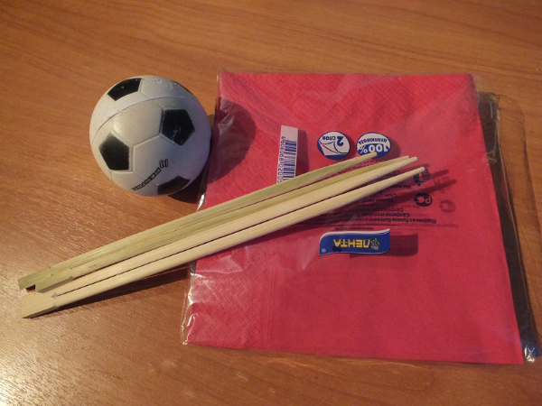 Старый мячик, салфетки, палочки для суши, ведерко икеевское, ну и старые бусины, ленточки и акриловые краски - вобщем малобюджетный вариант.
