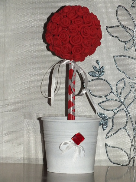 Люблю творить. Люблю дарить подарки сделаные своими руками. Вот решила попробовать сделать топиарий, тем более был повод - д.р. свекрови. Сам процесс мне очень понравился, а еще больше понравилось то, что такую красоту можно вылепить из всего, что есть под рукой. Я посмотрела на ваши деревца, полистала интернет, потом заглянула в свои "закрома" и пожалуйста: