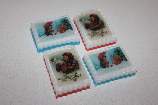 Мыло-открытки, можно сделать именные поздравления, логотипы и проч.