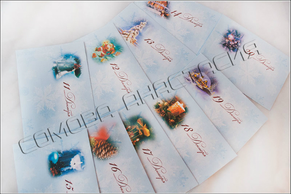 Бланк письма для деда мороза, состряпала в фш и распечатала. Конверты с 1по10 число.