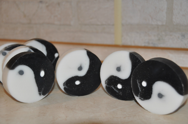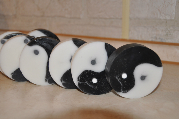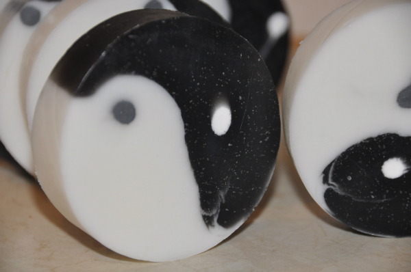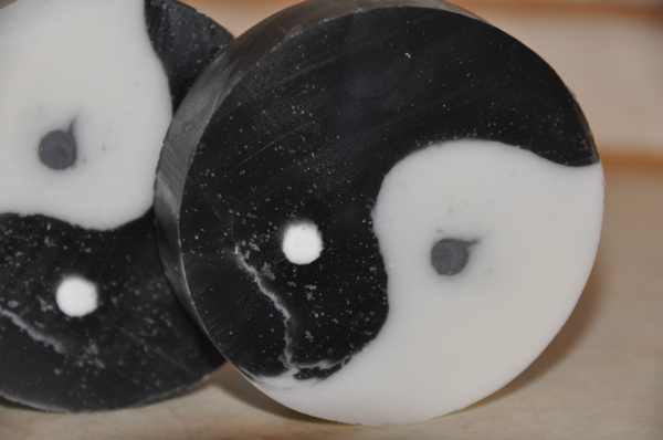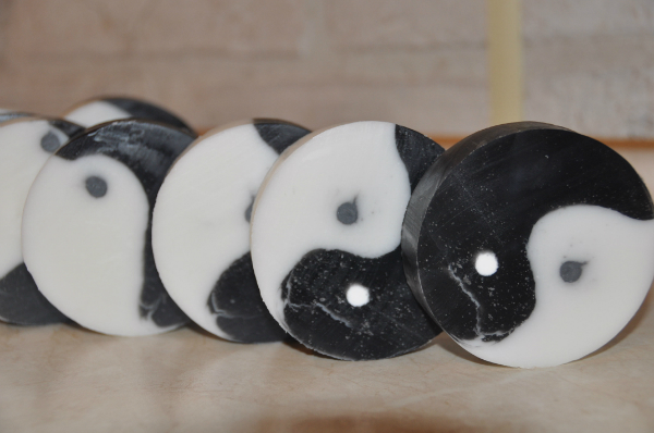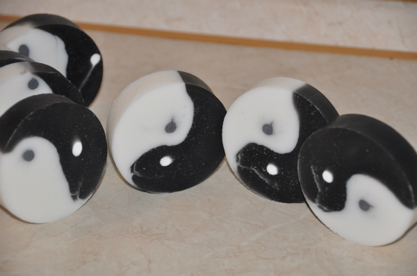 Очень стильно будет смотретья в белой и черной ванее (кафель там, отделка) - прямо настоящее интерьерное мыло!!!