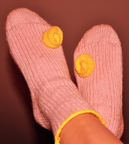 Затем мне отдали пакет розовых ниток (в то время, когда мои запасы пряжи были в дороге Москва-Петропавловск), но девочек в нашей семье пока нет, поэтому пришлось вязать носки себе
