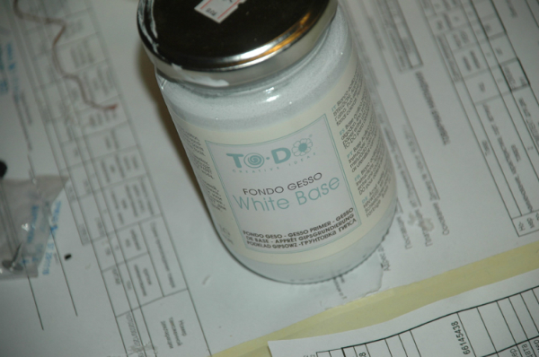 Поэтому берем фондо гессо, т..е акриловую базу или штукатурку или белую акриловую краску.