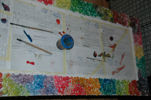 теперь когда база высохнет удобно рисовать акриловыми красками, у меня обычный набор из канцелярского магазина из 6 цветов