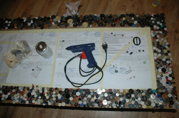 Это такое простецкое Икеевское зеркало в черной текстильной рамке, вариантов отделки была масса, но я нашла компромисный вариант. Найдите в доме то что вам мешается но руки не поднимаются выкинуть. У меня целый мешок пуговиц, а что есть у вас?