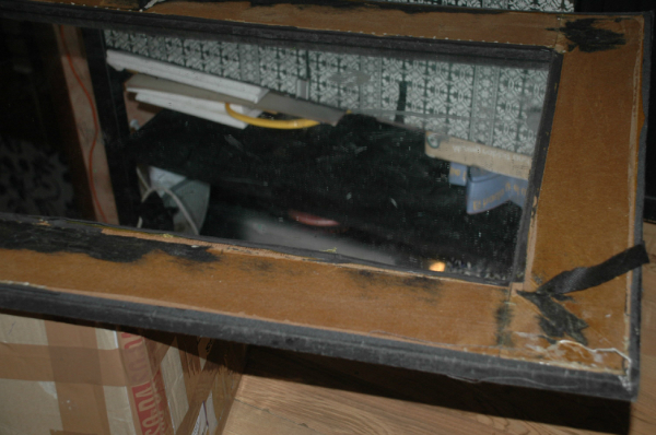 снимаем всю обивку с верху, благо мои хвостатые и так постарались поободрать зеркало частично)