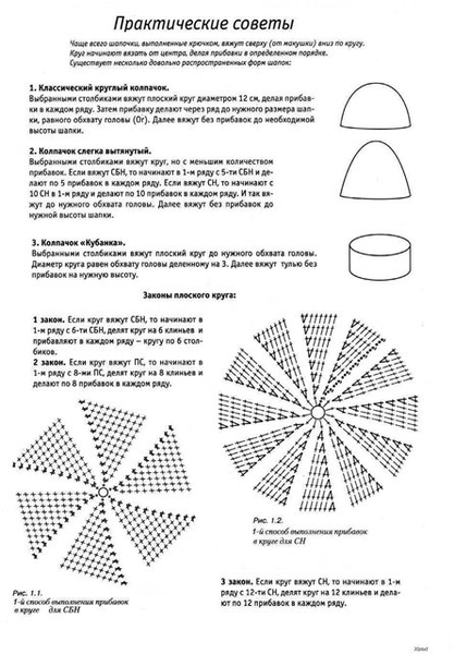 не за что) в принципе можно и наоборот вязать, т.е. набираешь цепочку по своей голове, вяжешь резинку, потом основное полотно, а потом убавляешь по тому же принципу, как на схеме.