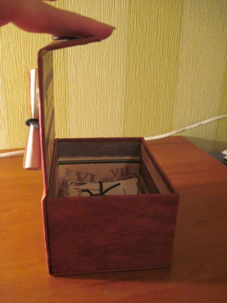 Пуговичка для красоты, крышка закрывается на липучку,т.к. магниты не взяли картон и кожу.