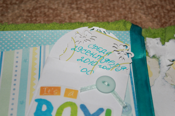 последний форзац, в конвертик положу бирки, а еще в один пакетик с первыми волосиками, ниже приклею большой конверт, туда положу тест на бер(с двумя послосками ес-но)) и подгуз(НЕ использованный, а первый сааааамый маленький)))