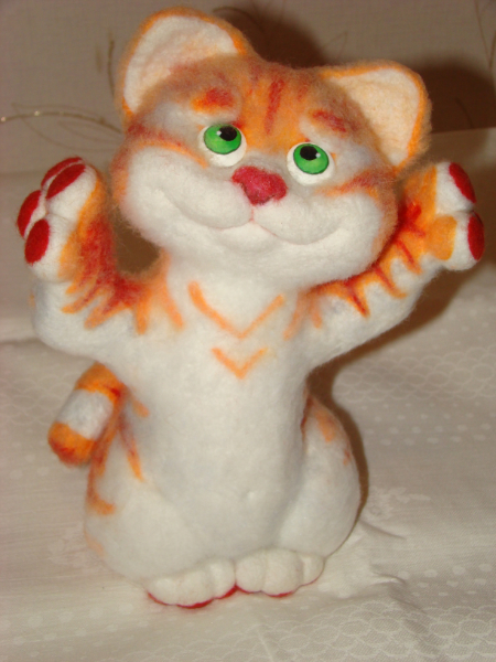 Фелтинг (валяние шерсти)Заранее прошу прощение за плагиат. Я начинающяя валяльщица и все игрушки делала по мастер класам или по фоткам игрушек мастеров. Да и не получился он такой как на фотках но все равно очень миленький.Извините за качество фото.