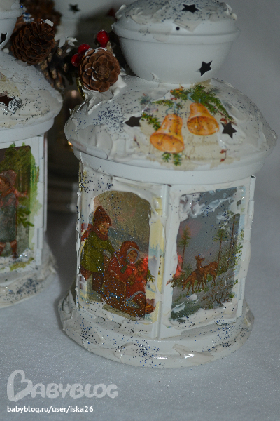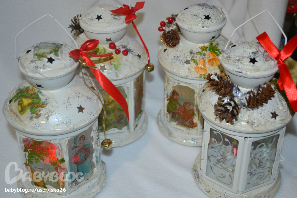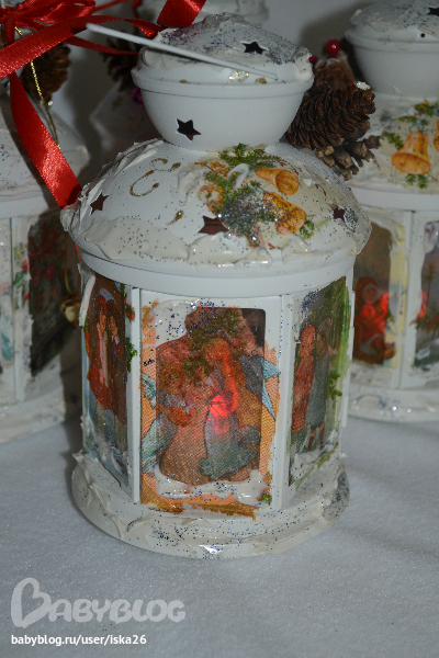 Видела такие фонарики, декупаж, у нас в ТЦ продают, аж за 3000 руб.