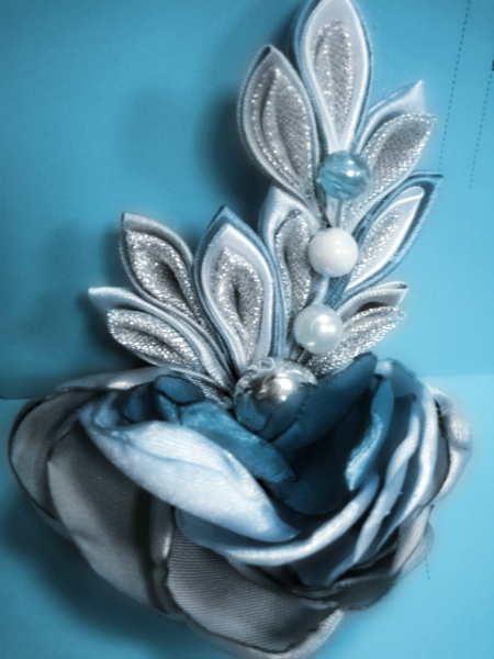 Спасибо, Маша ! Да, забыла написать. На голове будет корона из острых лепесков канзаши в бело-серо-серебристых тонах.