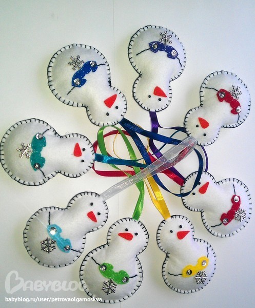 Здравствуйте! Есть бригада снеговиков (10-12 см, фетр, синтепон).
