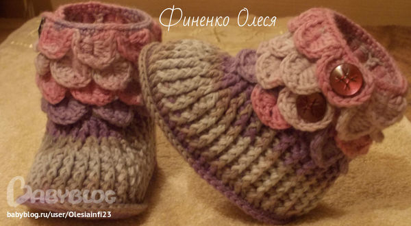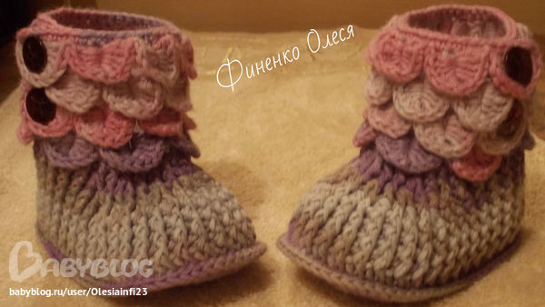 Спасибо! Первые я вязала по мотивам крокодильчиков http://www.liveinternet.ru/users/ltava/post238091920/ Пряжу брала Джинс,крючок №2. Пинетки получились 9,5 см. Подошву вяжем по схеме,затем ряд рельефными лицевыми столбиками,3 ряда рельефными лицевыми и изнаночными столбиками (получается как резинка). Затем три ряда так же вяжем рельефными,но при этом на мыске делаем убавления. Потом еще один ряд рельефными,и после него начинаем вязать узором Крокодиловая кожа. Пройдите по ссылке,там есть видео как вяжется этот узор.