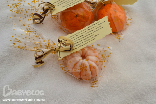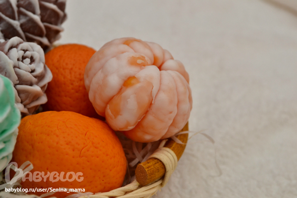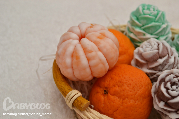 А я подумала, что мандарины - настоящие))) ну те, которые в кожуре.... Думала, ты их для красоты фотоснимка подсунула....а вот коммениты почитала - это ж мыло! нереал!