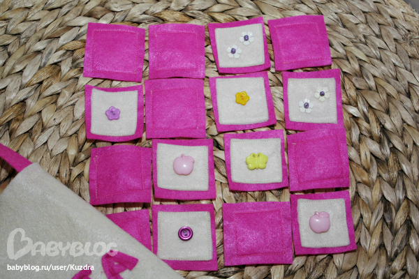Kuzdra в Рукоделие 13 лет "Мемори" - игра для развития памяти, фетр Известная игра "Мемори" для девочки Златы, идея позаимствована у рукодельниц с Этси. В наборе именная сумочка, 16 карточек 5*5 см и правила игры. Посмотрите еще 20 записей на эту тему Отменить Ответить Алла Здорово! Не знаете девочке понравилось? 24.03.2013 Ответить Kuzdra Да, понравилось! Девочке 3 года, пока полностью еще сложно, зато и "навырост" пойдет. )) 24.03.2013 Ответить Чудо клеточки )))) Спаси старые вещи, ТВОРИ! Чаты Беременных Выберите чат: Январята-2026 Февралята-2026 Мартята-2026 Апрелята-2026 Майчата-2026 Июнята-2026 Июлята-2026 Августята-2026