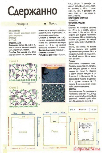 Пожалуйста)))) Я вязала покругу до пройм, потом двумя отдельными частями, сшила на плечах..........ну итд