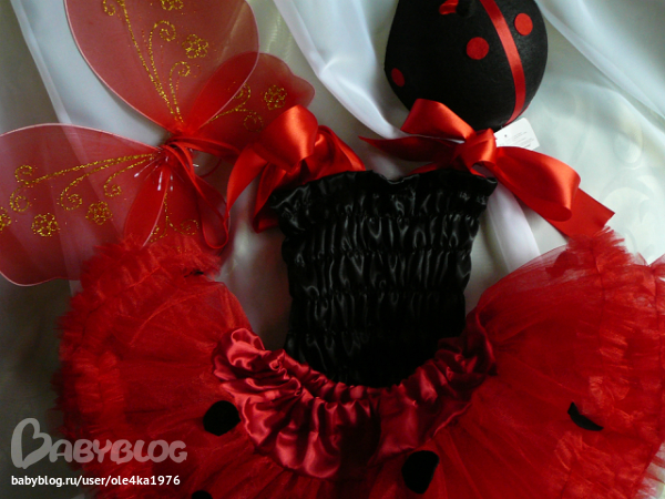 Шитье одежды, выкройки, ремонт одежды, шторы, швейные машины (уже приобретенные)Вот сотворила на днях, юбка - американка (25 см), топик-резинка (со шнуровкой сзади), ну и дополнительные аксесуары - шапочка и крылья (незнаю нужны они божьей коровке или нет?)
