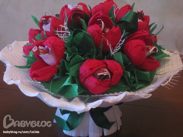 lalida в Рукоделие 13 лет .Букеты ручной работы. Предлагаю Вам букет из конфет "Дебют". Роскошный подарок как для женщин, так и для мужчин. Состоит из 11 конфет "Вишня в шоколаде".Украшен лентами и стразами. Цена 500 руб. Посмотрите еще 20 записей на эту тему Отменить Ответить И я с новогодкой. Матрешка-калошка или русская красавица Чаты Беременных Выберите чат: Январята-2026 Февралята-2026 Мартята-2026 Апрелята-2026 Майчата-2026 Июнята-2026 Июлята-2026 Августята-2026