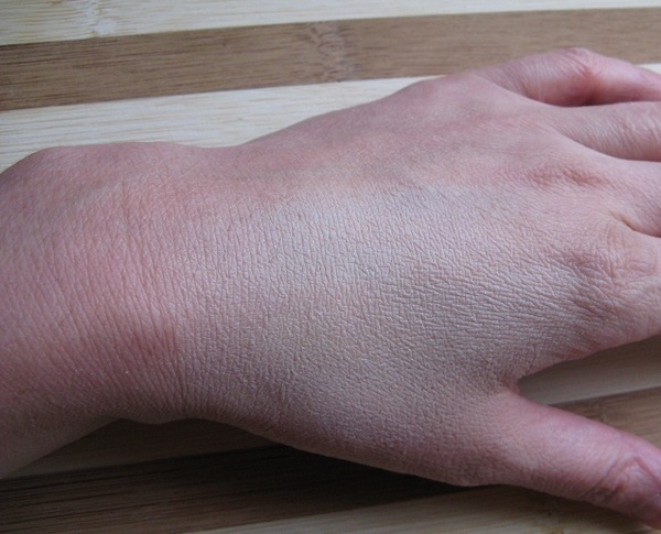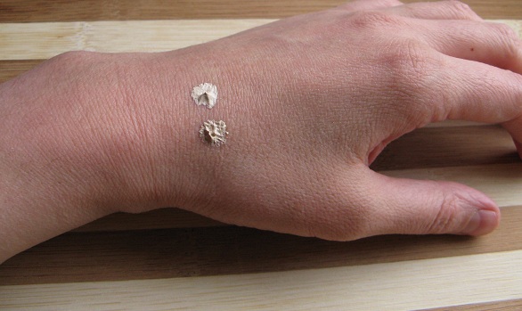 Вверху размазан светлый, внизу - бежевый. Я специально взяла цвета далекие от "родного", иначе вообще ничего не видно... А тут - хоть что-то :)