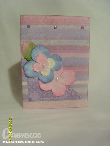 Нежно-розово-сиренево-голубая,мне не очень нравится,но покажу все уж))Она какая то пустоватая,и даже не хочу её до ума доводить,устала от нее,в голову мысли не идут..
