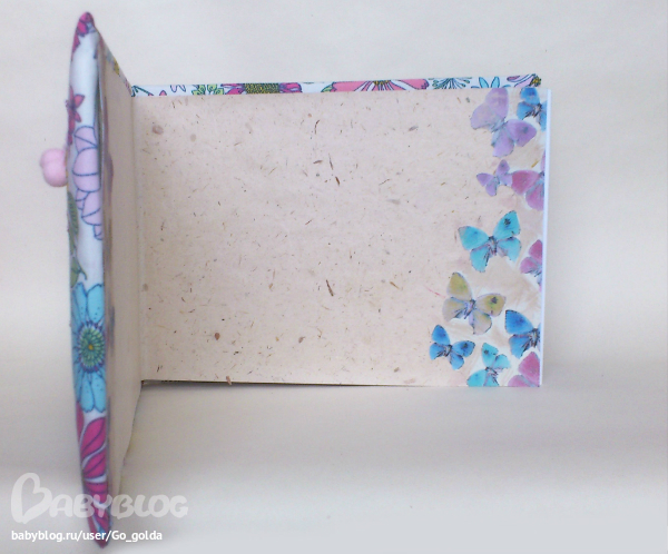 Форзац из бумаги с вкраплениями, как я называю, "сена". Очень мягкая и теплая эта бумага,я ее люблю!