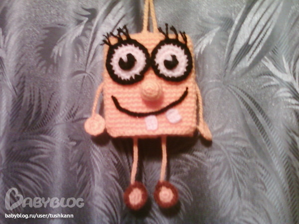 Вчера пока делались уроки с детьми связался Спанч Боб - страшный такой получился. Буду еще тренироваться спанчбобов делать, муж попросил в машину поменьше сделать.. а с этим младший играть будет, давно такого просил, а потом еще и на елочке повисит ( если доживет))))