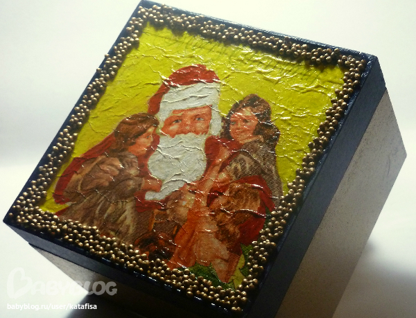 А это его коробочка. Декупаж делала сама. А бисер это крупа
