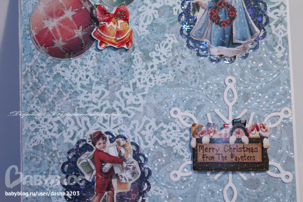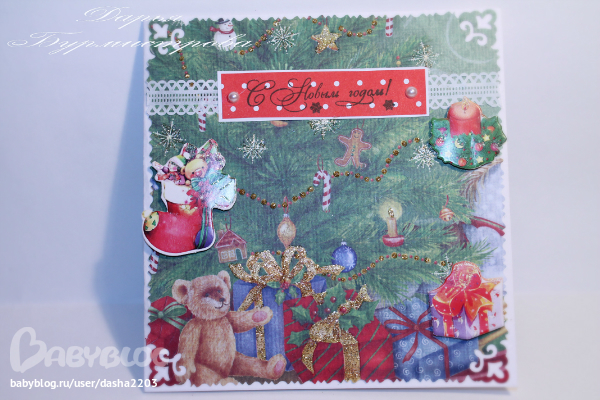 Это все готовилось из последних материалов-последние листы,последние картинки-украшалки.Я и сама вижу некоторые недочеты.Где-то хотелось чем-то другим украсить-но не покупать же сейчас набор чипбордов за 200р-из которых дай бог пару штук использую-остальное будет валяться до следующего НГ.