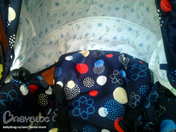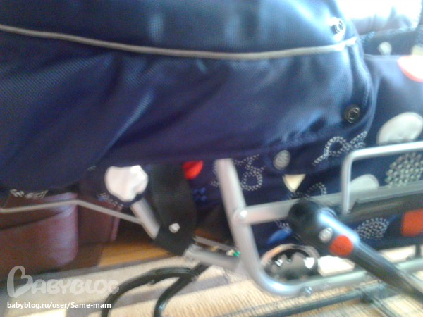 немного предистории: в марте 2011 купили коляску 2 в 1, фирму посоветовала знакомая, т.к. денег не много, а эта коляска подходила по ВСЕМ параметрам, купили практически не думая... и вот родилась доча, и стали мы кататься в нашей карете... были мелкие недочеты, но куда без них... в остальном все более чем устраивало... мы подросли, пора садиться в прогулку и тут засада... в прогулочном блоке 2,5 серьезных недостатка, почему 2,5? да потому что если бы не было 1 главного, минуса, на остальное я закрыла бы глаза. И так по порядку минус 1 и главный при откинутом состоянии между спинкой и капом образуется дырка. Скажете куда смотрела когда покупала, не знаю, но мы даже не мерили кап на прогулку... просто смысл в том, что кап переставляется с люльки.(сорри за качество)