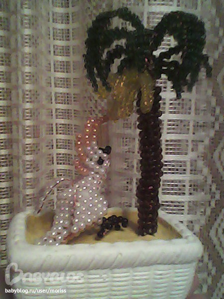 Спасибо Сашенька. Вот только пришла я к своей соседке на ревизию (когда загораюсь на плетение-нарвится, а когда сплету то уже красоты не вижу) она говорит, что попугай сдесь не к месту, может лучше сдьсь положить крокодилдьчика. Сплела ещё и крокодильчика. Вечером выложу фото.