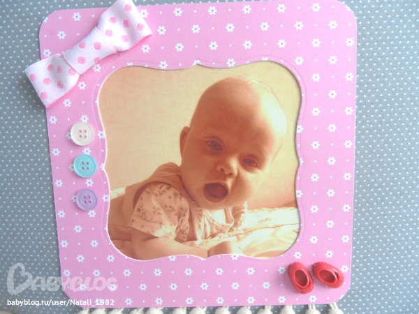 Дальше поехали, страничка из роддома. Единственная фотка, где Маруся еще в роддоме, да и та с телефона, отсюда качество (эт я, голова садовая, не взяла фотик с собой!). Фотошопила я ее, фотошопила, да не фотошопится она, пришлось довольствоваться тем, что есть.