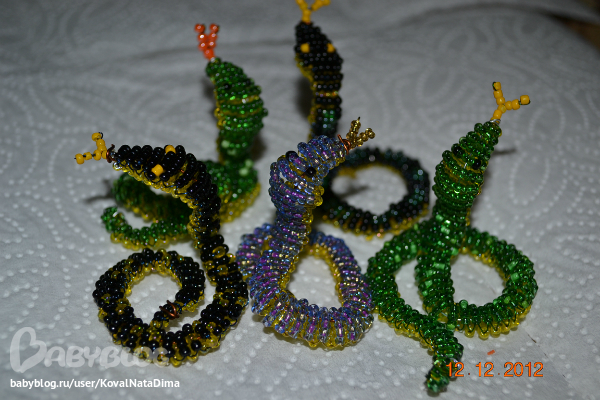Бисер. Бисероплетение. Украшения из бисера.наплелись такие змейки на сувениры знакомым.