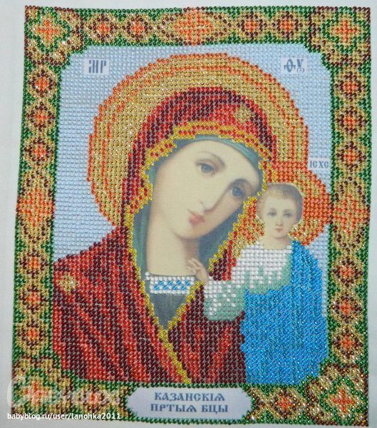 Стоимость рассчитывается в зависимости от размера, колличества цветов, качества самого биссера и сроков выполнения работы (срочные дороже). Или же материал+оформление+15%. Размер этой, если мне не изменяет память 21 на 25