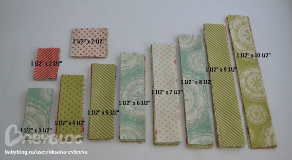 Я поняла, что это для блока изба, но почему такие размеры большие у полосок? Кстати, выглядит очень красиво, но, по опыту скажу, что белый цвет очень непрактичен. Стеганые одеяла, сделанные своими руками, живут очень долго, стирать их нежелательно. В чистку заколебаешься носить. А эти ткани чьего производства?