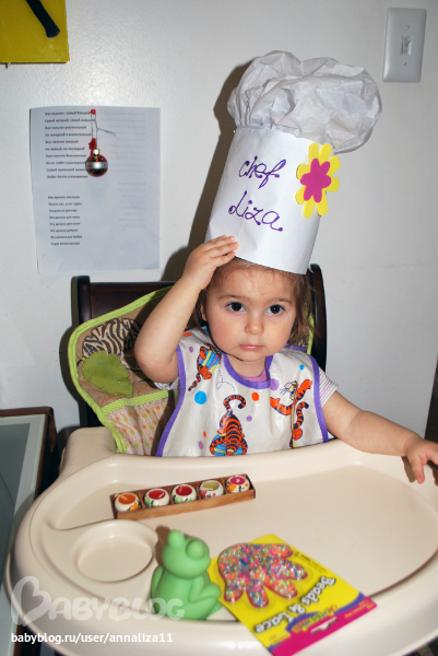 Спасибо. Да, колпачки делали сами (воспользовались идеей)Делать их вот как: -берется лист бумаги -склеивается полый цилиндр (радиус и высоту задаёте сами, прежде померив окружность головы)Потом:-берете любую другую бумагу, но только мягкую ( это могут быть бумажные салфетки, упаковочная бумага для подарков)и приклеиваете её, закрывая одно из отверстий цилиндра. Про ёлку:Мы тоже боялись, что может уронить или попробовать ёлку на вкус...поэтому ёлку нашу мы поставили высоко.