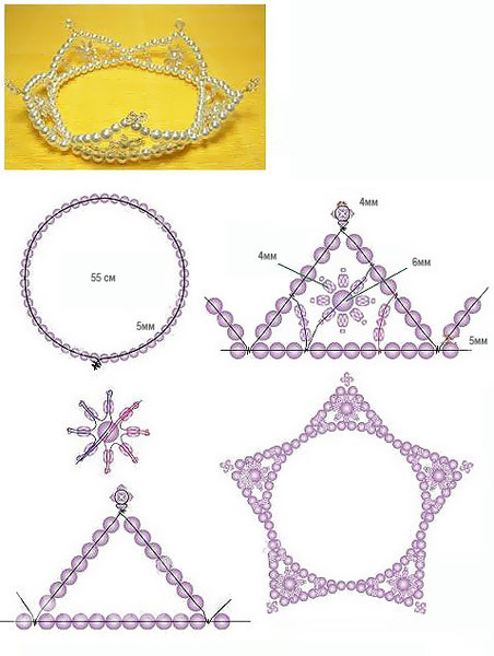 Бисер. Бисероплетение. Украшения из бисера.Подскажите девочки может кто уже плёл корону из бисер,нужна схемка.Но только мне нужна не большая,а тоя её хочу прикрепить к ободку