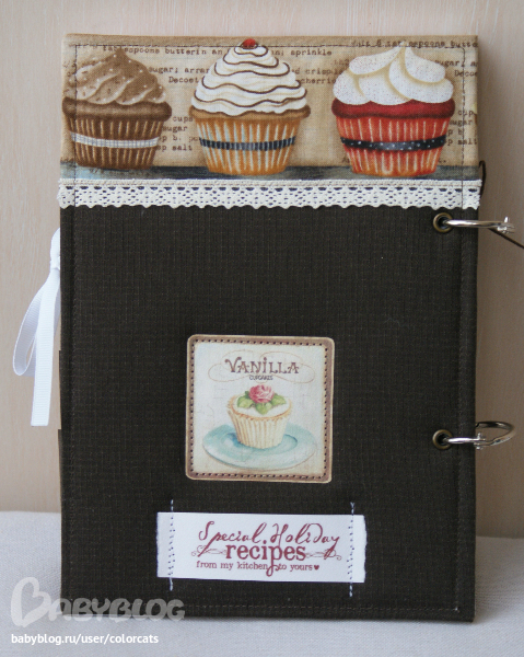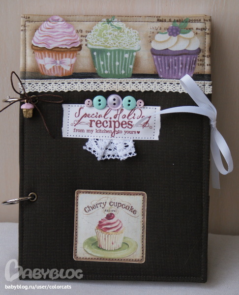 СкрапбукингВсем привет))) Я сегодня с еще одной книгой для записей кулинарных рецептов))) Сделалась просто так, очень уж мне хотелось с этой вкусной тканюшкой что-нибудь вкусненькое сделать)))) Формат блокнота - А5, около 200 страниц внутри. есть четыре раздела: "Закуски", "Горячее", "Десерт" и "Разное". Ну и кончно, моного-много вкусных кексиков))))