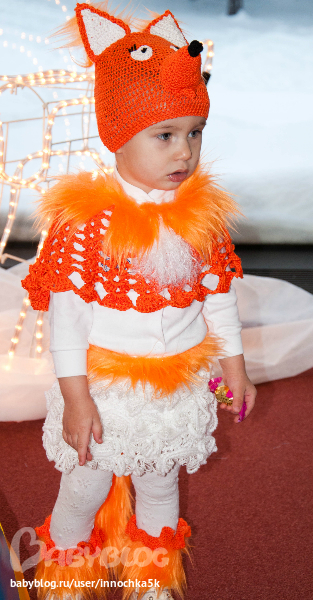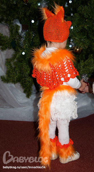Костюмчик состоит из шапочки- мордашки, гетр на ножки, болеро-накидки ))) всё это обшито мехом))) доченька была самой яркой)))