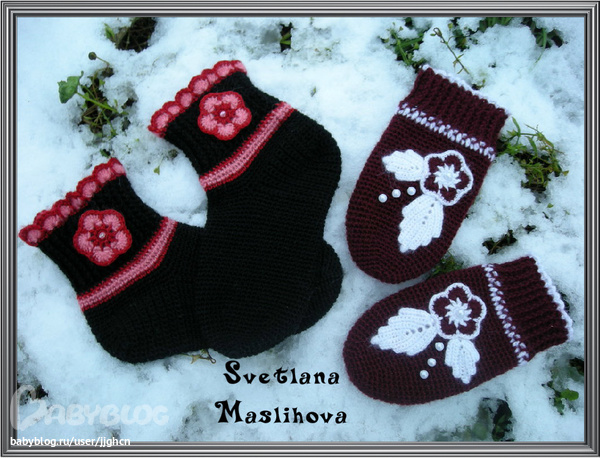 А ещё у дочкиной подружки стали мёрзнуть ножки и ручки и связались для неё варежки и шерстяные носочки.