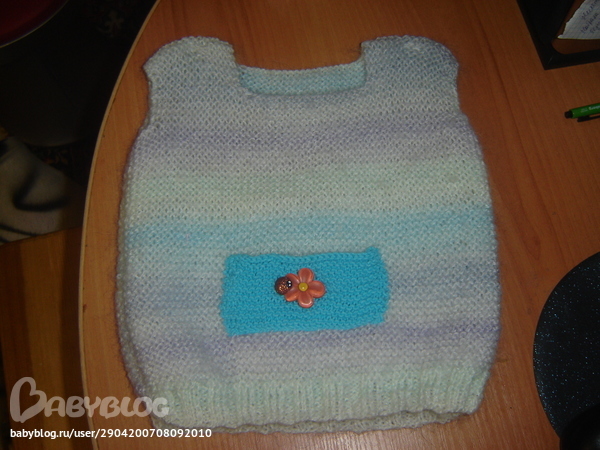 Хочу показать мою первую работу на машинке Меда. Первый раз вязала и жилетку. И как бывает чуток с шириной переборщила. Надо научиться расчитывать правильно петли. Как раз был повод попробовать отданую мне вязальную машинку Меда. Т.к вяжет только платочной вязкой, резинку вязала на спицах.