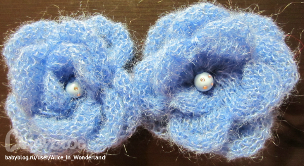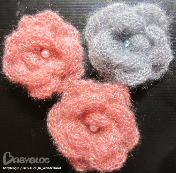 Еще я научилась вязать цветочки на однофонтурной машине (LK-150) подробный мастер-класс я нашла в журнале "Любо-Дело" № 3 за 2010 год. Спасибо огромное за него автору Татьяне Деминой. Пряжа остатки итальянского мохера (состав мохер, шелк) Очень нежненькие получились. понравились они мне, какое значение имеет качество пряжи из чего связан цветочек. Синенькие связаны были из обычого советского мохера купленного лет 5-7 на распродаже, они совсем другие. Из Итальянского задумала себе кофточку связать. Не знаю насчет тепла, но к телу точно не будет колоться и будет красиво очень. (Мохер Кидсета). Жаль фотик так цвета испортил. Цвета тоже у этой ниточки бесподобные. Простите -что-то типа рекламы вышло - но мохерчик и правда очень понравился :)
