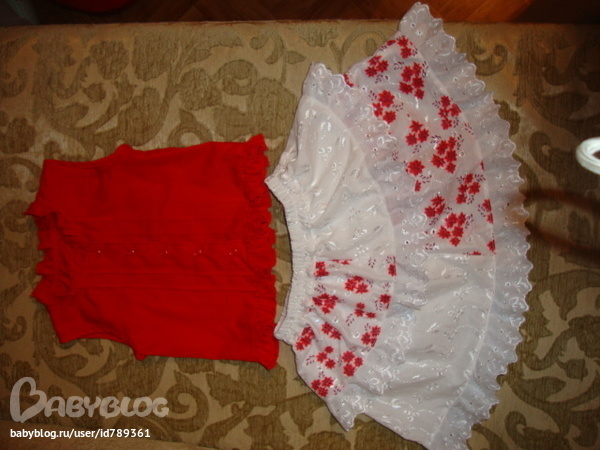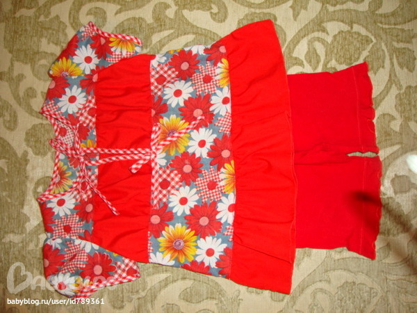 Да, три наряда получились почти бесплатно, сарафан перешила из своего, не ношу, но ткань красивая и хорошего качества, остальное из остатков. Свекровь шила себе халат с ромашками, мне очень кусочки приглянулись, дома лежал кусок красной х/б ткани, хватило на блузку и красные вставки на тунике, клетчатую косую бейку купила в магазине тканей.