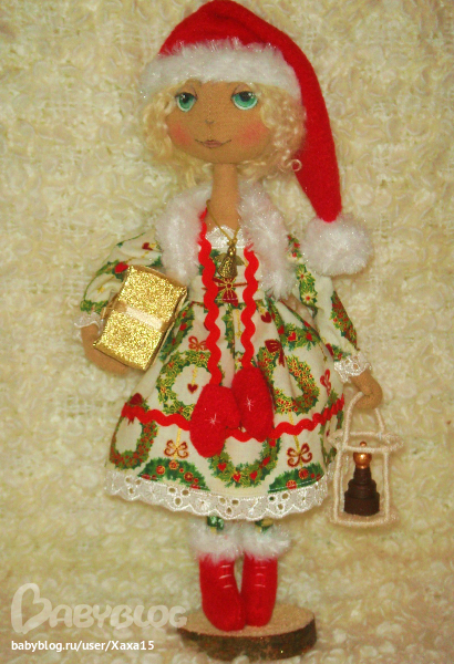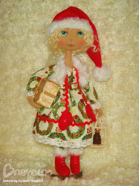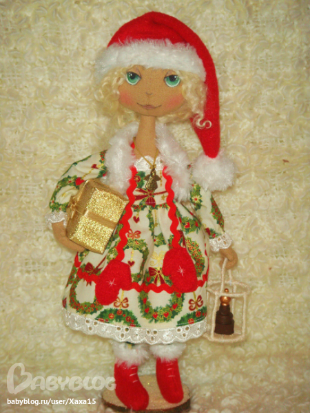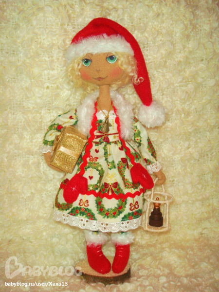 Рождественский гном Валентина - помощница Санты:) Очень много детишек ждут свои подарк на Рождество и Новый Год, а Санта всего один, да и не молод уже, тяжело ему! И вот такие рождественские гномы помогают ему разносить по домам подарки для малышей:) В руке у каждого Волшебный фонарь, который в самую тёмную ночь и самую страшную метель поможет отыскать дорогу:)) Эта куколка принимала участие в замечательном конкурсе: http://www.babyblog.ru/community/post/volshebstvo/1725632 И заняла 1место, чему я несказанно рада:))))))) Огромное спасибо Ясмин, которая устраивает подобные мероприятия!!!!!
