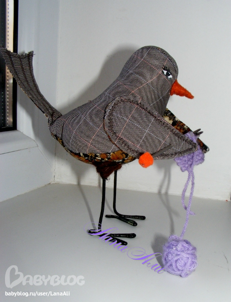 Построила выкройку, сшила. Честно скажу, пришлось корректировать выкройку уже в процессе шитья. Получилось, конечно, не так как видела на картинках, но кто говорил, что должно быть также. Потом подумалось, а ведь подружка моя вяжет спицами, надо и моей птичке спицы вручить.