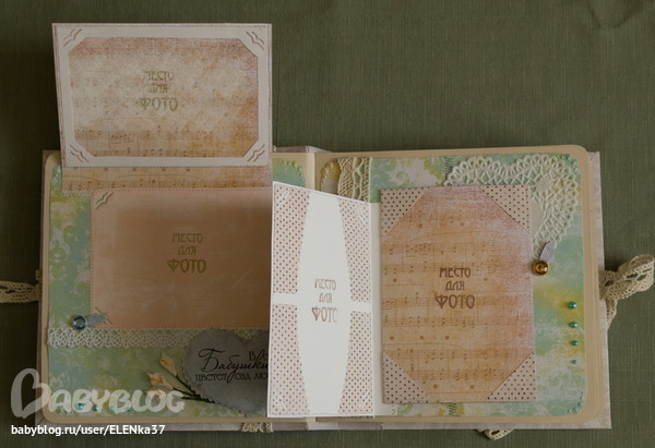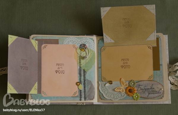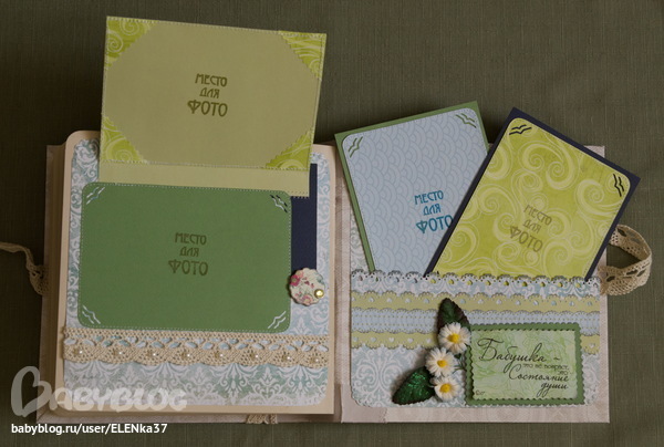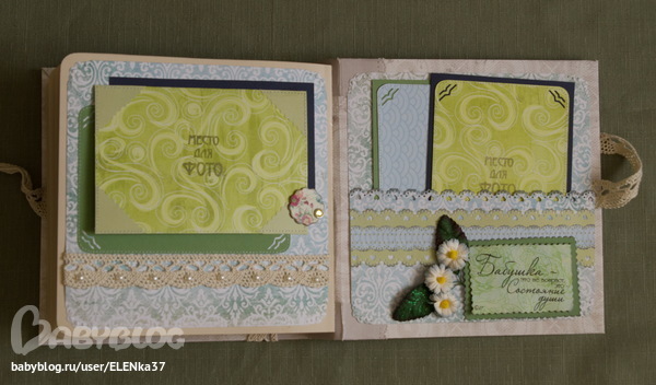 СкрапбукингЗдравствуйте ещё раз! Представляю на ваш суд очередное творенье. На этот раз альбом делался в подарок любимой бабушке (что-то подсела я на эти фотоальбомы).