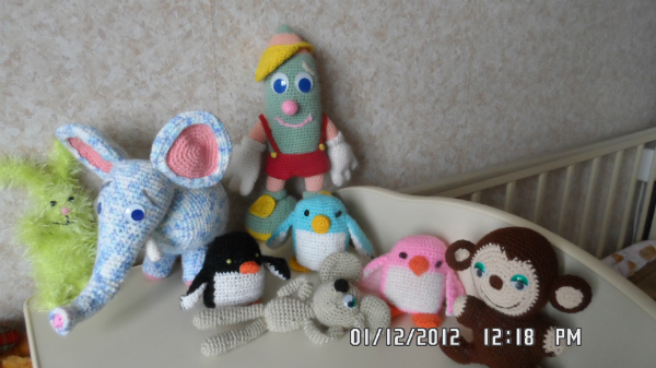 Игрушечный мир - животныеХвастаюсь)) Это мои первые игрушки. Так что строго не судите. Вязала их с августа по октябрь, пока отдыхала на море. Т.к. там не могла найти наполнитель для игрушеу, набивала уже по приезде домой.