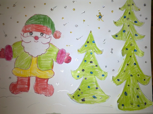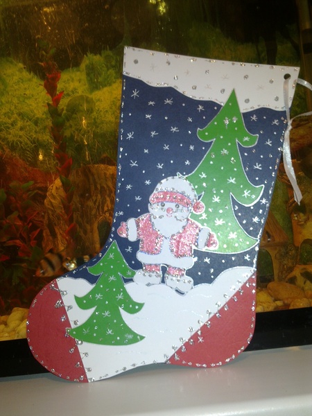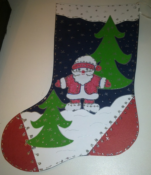 Поделки с детками.Вчера у нас с сыном выдался вечер творчества и прикладного искусства, и на выставку в садик сегодня отправился сапожок Деда Мороза. Апликация - цветной картон, ручки и клей с блестками.