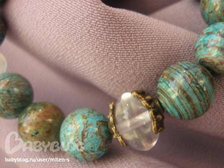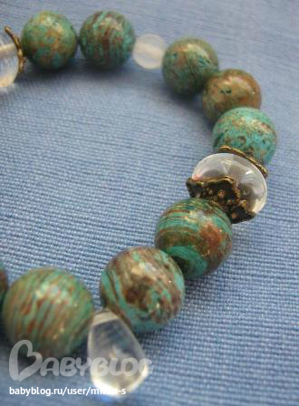 Бижутерия для слингомам. Слингобусы. Грызунки.Еще один браслет сотворился накануне из голубой яшмы с коричневыми прожилками, с чешскими стеклянными бусинами (вставки), прозрачные и матовые.