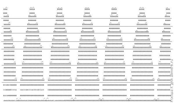 Я вот так убавляла! Где х — лицевая петля, о — изнаночная петля, хх под дугой — 2 петли вместе лицевой (вязать за задние стенки).